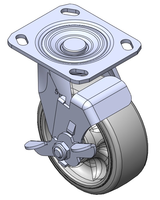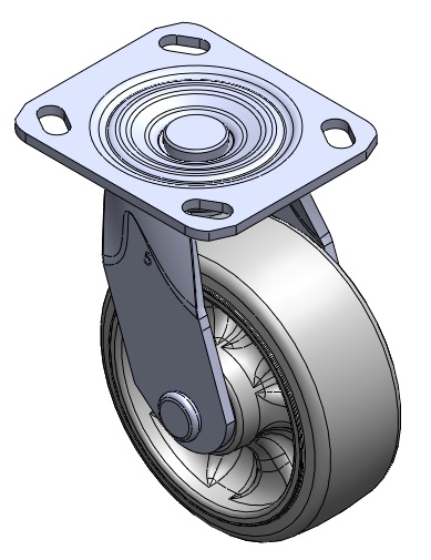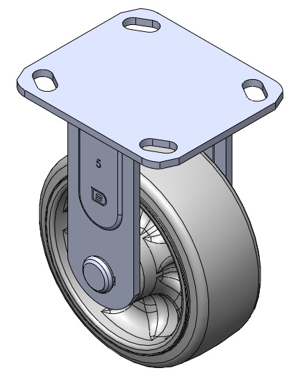 Rigid Caster with Welded Caster Fork Zine-Plated, Mounting Type - Top Plate Reinforced, impact-resistant High-quality Impact Resistance Polypropylene Wheel Center with High-Quality Thermoplastic Rubber (TPR) tread Gray color, Bearing—precision long bead. |
