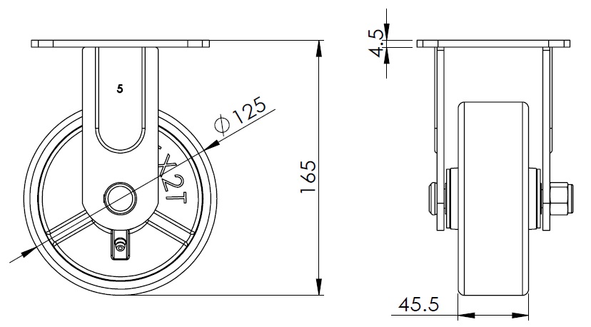 PU (black) Wheel Diameter × Wheel Width 125 x 45.5mm |