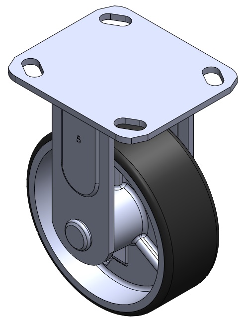 Rigid Caster with Welded Caster Fork Zine-Plated, Mounting Type - Top Plate Cast Iron core with High Quality Polyurethane Wheel Tread Black, Bearing—Annual Ball Bearing. |