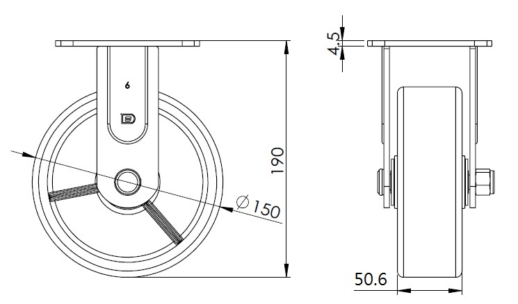 Wheel tread: high quality polyurethane Wheel Center: iron core/cast iron core Drawings are for reference only and may differ from the product |