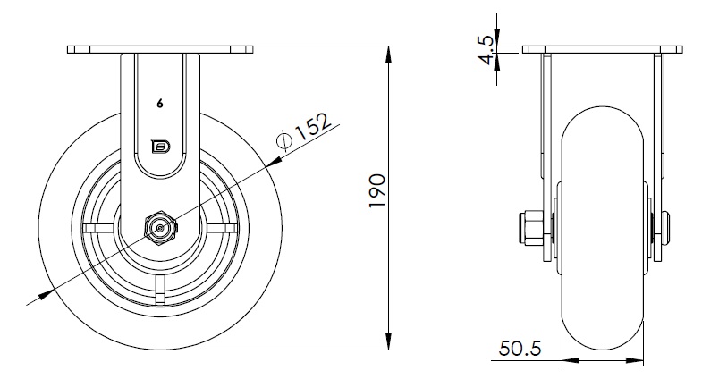 PPR (grey) Wheel Diameter × Wheel Width 152 x 50.5mm |