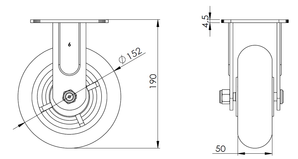 PPR (grey) Wheel Diameter × Wheel Width 152 x 50mm |