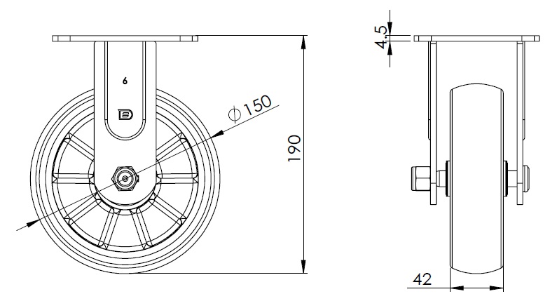 Wheel tread: high quality polyurethane Wheel Center: aluminum core Drawings are for reference only and may differ from the product |