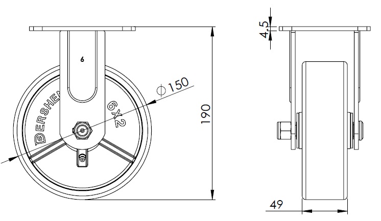 PU (red) Wheel Diameter × Wheel Width 150 x 49mm |