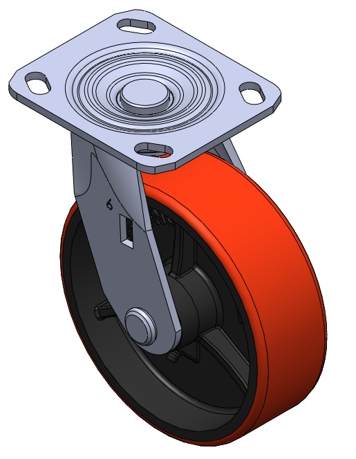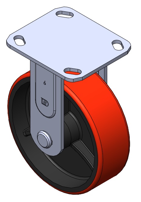 Rigid Caster with Welded Caster Fork Zine-Plated, Mounting Type - Top Plate Cast Iron Wheel Center with High Quality Polyurethane tread Red, Bearing—Annual Ball Bearing. |