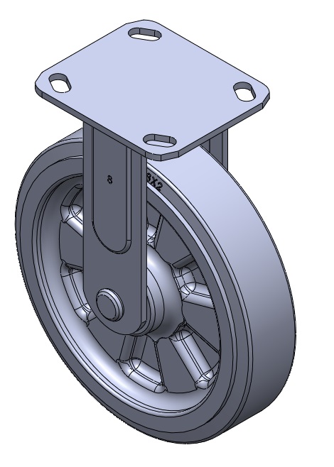 Rigid Caster with Welded Caster Fork Zine-Plated, Mounting Type - Top Plate Reinforced, impact-resistant High-quality Impact Resistance Polypropylene Wheel Center with High-Quality Thermoplastic Rubber (TPR) tread Gray color, Bearing—precision long bead. |