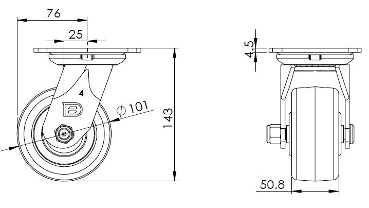 Phenolic (black) Wheel Diameter × Wheel Width 101 x 50.8mm |