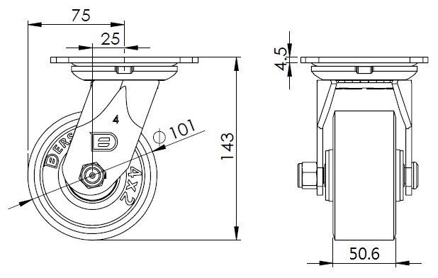 Wheel tread: high quality polyurethane Wheel Center: iron core/cast iron core Drawings are for reference only and may differ from the product |