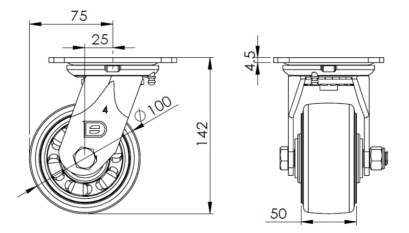 WHDR (gray) Wheel Diameter × Wheel Width 100 x 50mm |