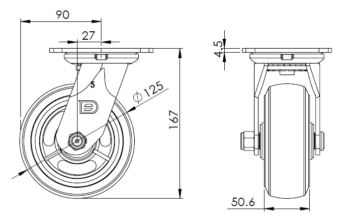 Rubber (black) Wheel Diameter × Wheel Width 125 x 50.6mm |