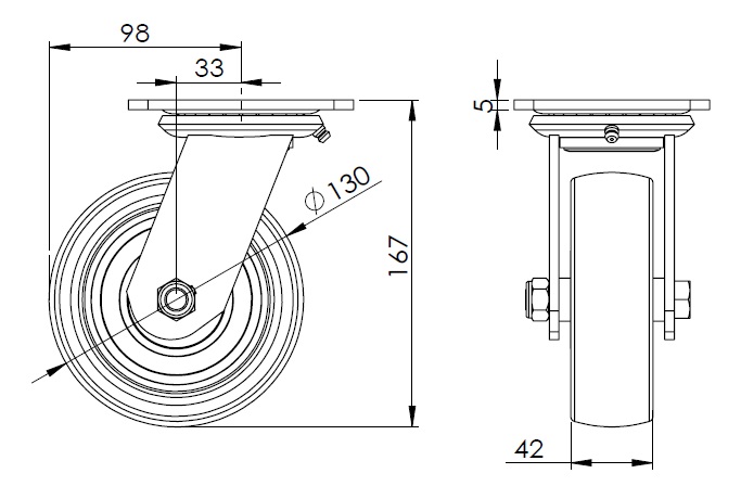 PU (red) Wheel Diameter × Wheel Width 130 x 42mm |