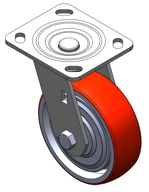 Swivel Caster with Welded Caster Fork Zine-Plated, Mounting Type - Top Plate (with iron cover) Cast Iron Wheel Center with High Quality Polyurethane tread Red Cast Iron finish, Ball Bearing. |