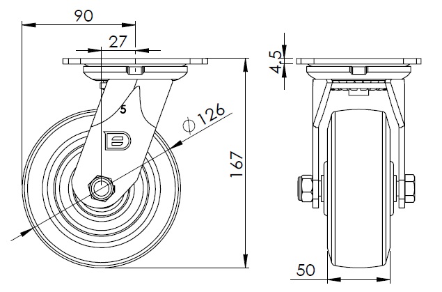 PPR Wheel Diameter × Wheel Width 126 x 50mm |