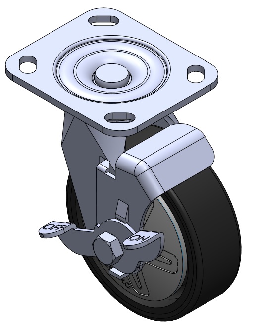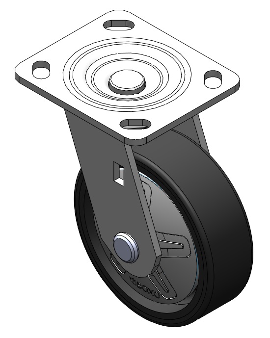 Swivel Caster with Welded Caster Fork Zine-Plated, Mounting Type - Top Plate (no logo) (with iron cover) Cast Iron Wheel Center, High Quality Polyurethane tread Black, Bearing—Ball Bearing. |