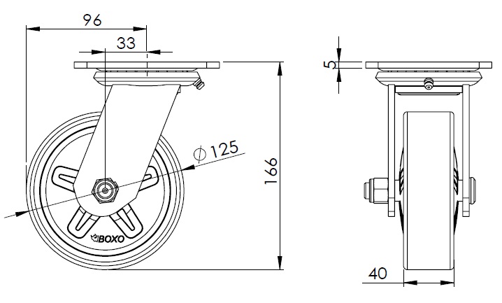 PU (black) Wheel Diameter × Wheel Width 125 x 40mm |