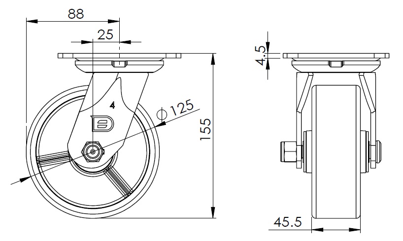 PU (red) Wheel Diameter × Wheel Width 125 x 45.5mm |