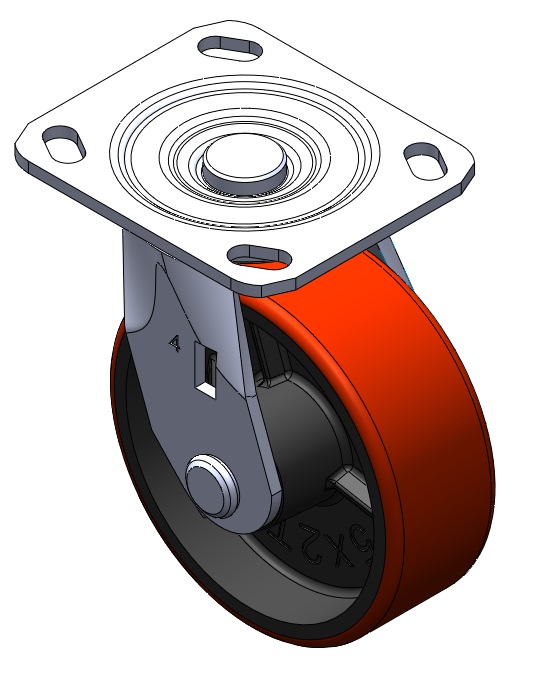 Swivel Caster with Welded Caster Fork Zine-Plated, Mounting Type - Top Plate (4-inch Fork) Cast Iron Wheel Center, High Quality Polyurethane tread Red, Bearing—Annual Ball Bearing. |