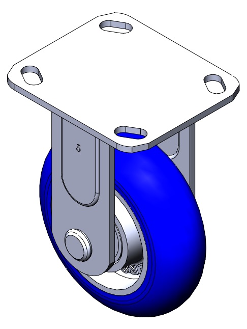 Rigid Caster with Welded Caster Fork Zine-Plated, Mounting Type - Top Plate Cast Iron Wheel Center, High Quality Polyurethane Wheel Tread (extra-thick rubber) Blue color, Bearing—Ball Bearing. |