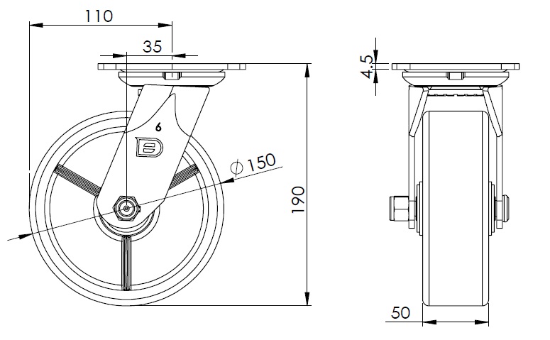 PU (green) Wheel Diameter × Wheel Width 150 x 50mm |