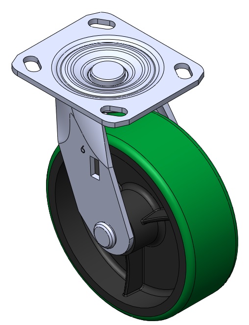 Swivel Caster with Welded Caster Fork Zine-Plated, Mounting Type - Top Plate Cast Iron Wheel Center with High Quality Polyurethane tread Green, Bearing—Annual Ball Bearing. |