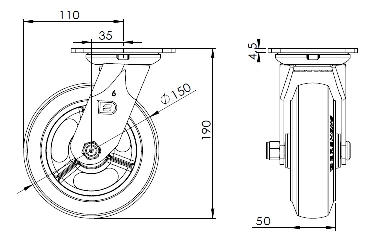 Rubber (black) Wheel Diameter × Wheel Width 150 x 50mm |
