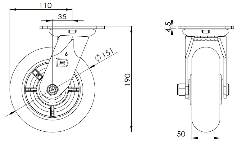 PPR (black) Wheel Diameter × Wheel Width 151 x 50mm |