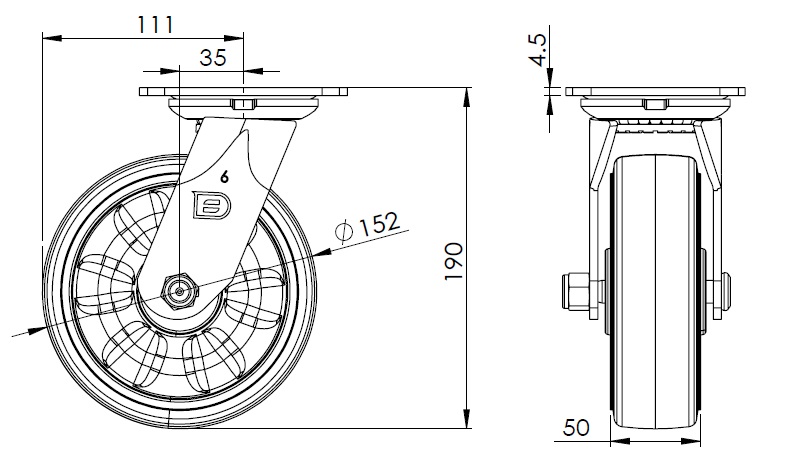 W Resolute Wheel Diameter × Wheel Width 152 x 50mm |
