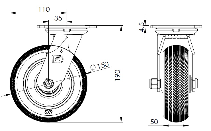 Rubber (black) Wheel Diameter × Wheel Width 150 x 50mm |