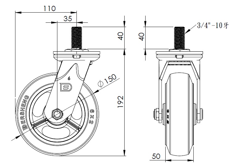 Rubber (black) Wheel Diameter × Wheel Width 150 x 50mm |
