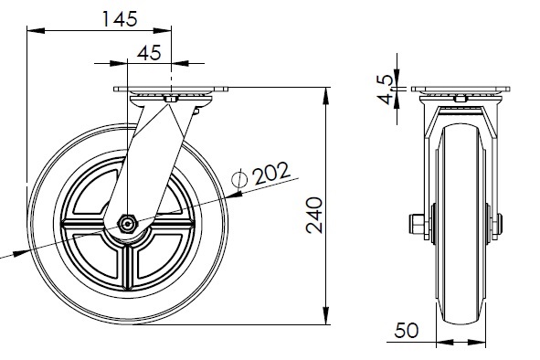 Rubber (black) Wheel Diameter × Wheel Width 202 x 50mm |