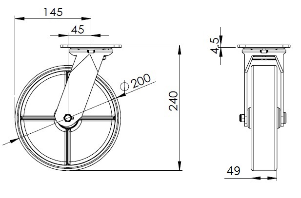 PU (green) Wheel Diameter × Wheel Width 200 x 49mm |