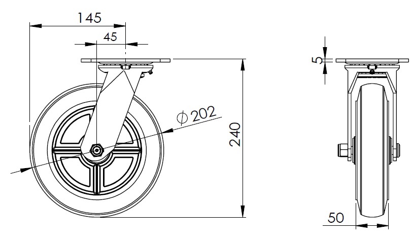 Rubber (black) Wheel Diameter × Wheel Width 202 x 50mm |