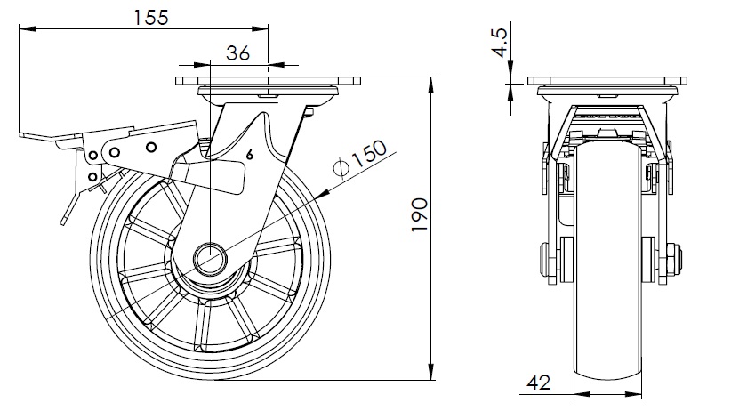 Wheel tread: high quality polyurethane Wheel Center: aluminum core Drawings are for reference only and may differ from the product |