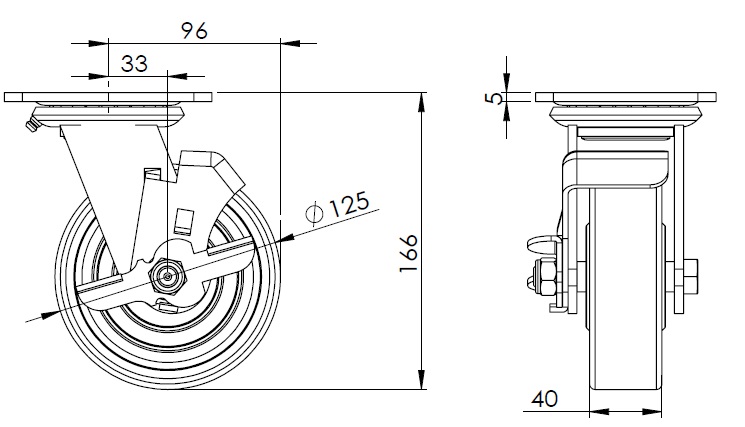 PU (red) Wheel Diameter × Wheel Width 125 x 40mm |