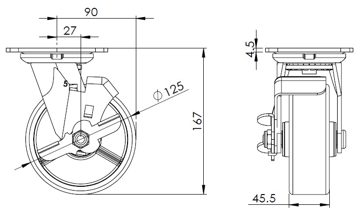 PU (red) Wheel Diameter × Wheel Width 125 x 45.5mm |