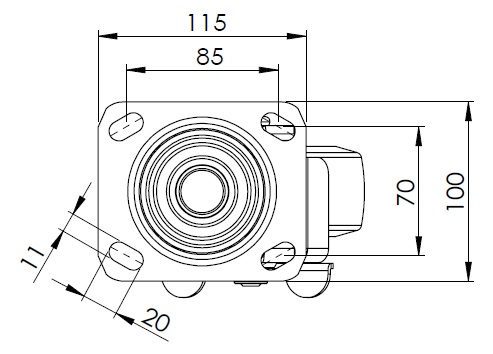 Wheel tread: Thermoplastic rubber elastomer (TPR) Wheel Center: Made of high-quality impact-resistant polypropylene Drawings are for reference only and may differ from the product |