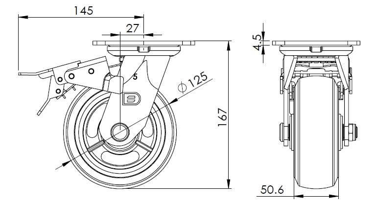 Rubber (black) Wheel Diameter × Wheel Width 125 x 50.6mm |