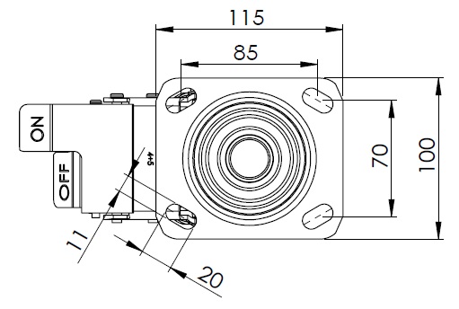 Casters with front brake and With locking system. Welded Caster Fork. Zine-Plated. Mounting Type - Top Plate. Cast Iron Wheel Center with High-Quality Resilient Rubber Wheel Tread. Black. Bearings—Annual Ball Bearings. |