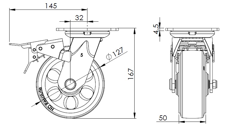 Swivel Caster With Front Brake