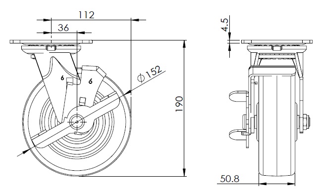 Phenolic (black) Wheel Diameter × Wheel Width 152 x 50.8mm |