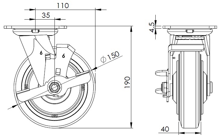 NBR Wheel Diameter × Wheel Width 150 x 40 mm |