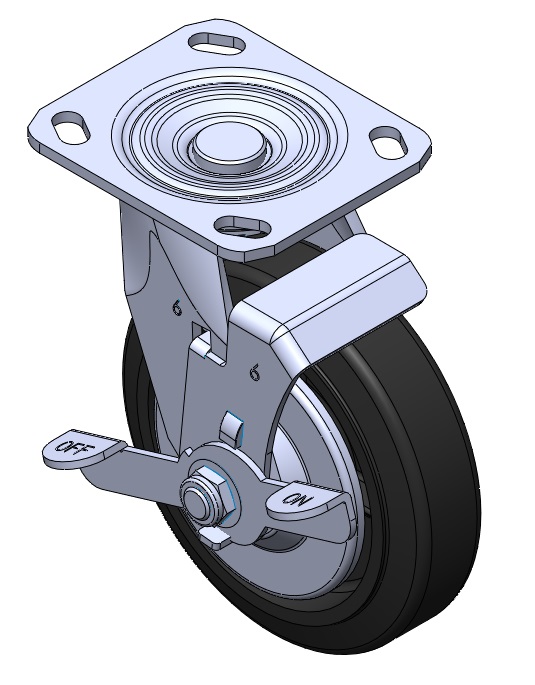 Casters with Side Brakes and With locking system. Welded Caster Fork. Zine-Plated. Mounting Type - Top Plate (with iron cover). Cast Iron core with High Quality Polyurethane Wheel Tread. Black finish. Bearings: Ball Bearings. |