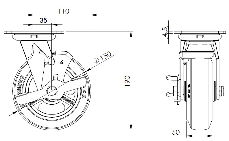 Rubber (black) Wheel Diameter × Wheel Width 150 x 50mm |