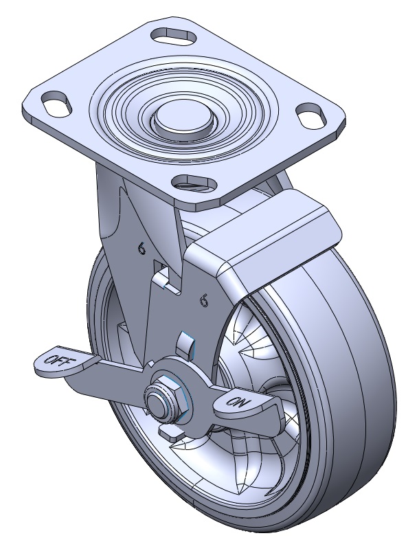 Casters with Side Brakes and With locking system. Welded Caster Fork. Zine-Plated. Mounting Type - Top Plate. High-Quality Impact-Resistant Polypropylene Wheel Center with High-Quality Reinforced Polypropylene Rubber (TPR) Wheel Tread. Dark gray. Bearings—Annual Ball Bearing. |