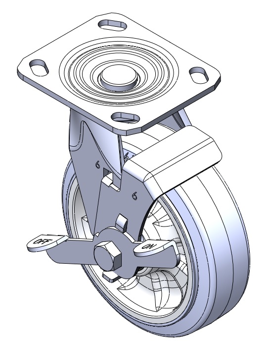 Casters with Side Brakes and With locking system. Welded Caster Fork. Zine-Plated. Mounting Type - Top Plate. Reinforced, impact-resistant polypropylene Wheel Center with High-Quality Reinforced Polypropylene Rubber (TPR) Wheel Tread. Dark gray. Bearings—Annual Ball Bearing. |