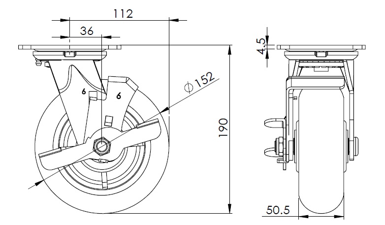 PPR (grey) Wheel Diameter × Wheel Width 152 x 50.5mm |