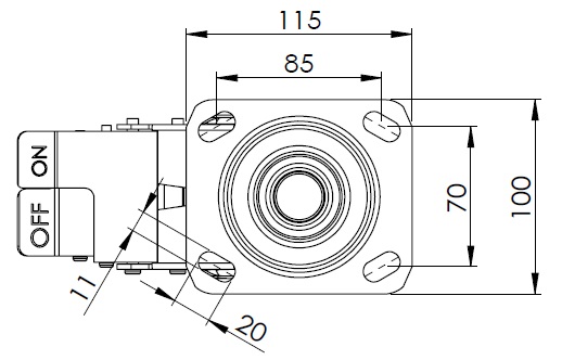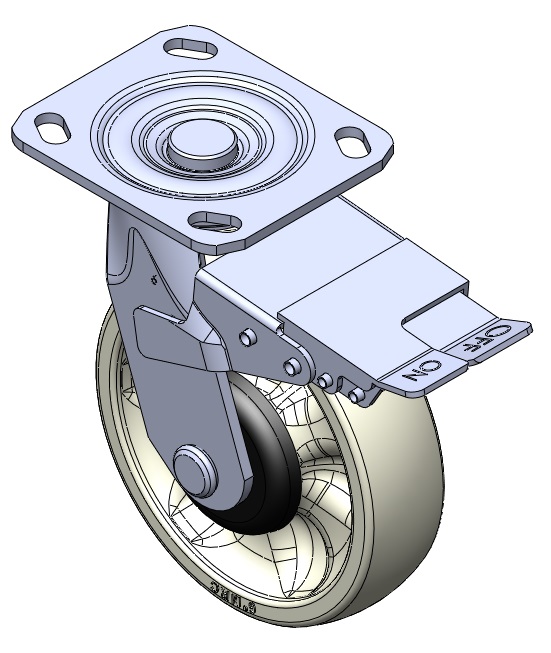 Casters with Side Brakes and With locking system. Welded Caster Fork. Zine-Plated. Mounting Type - Top Plate (with plastic cover). Reinforced thermoplastic Wheel Center and Wheel Tread. White. Bearings: Ball Bearings. |
