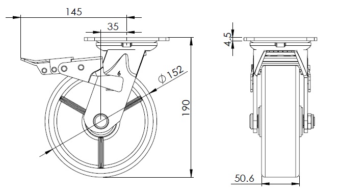 Wheel tread: high quality polyurethane Wheel Center: iron core/cast iron core Drawings are for reference only and may differ from the product |