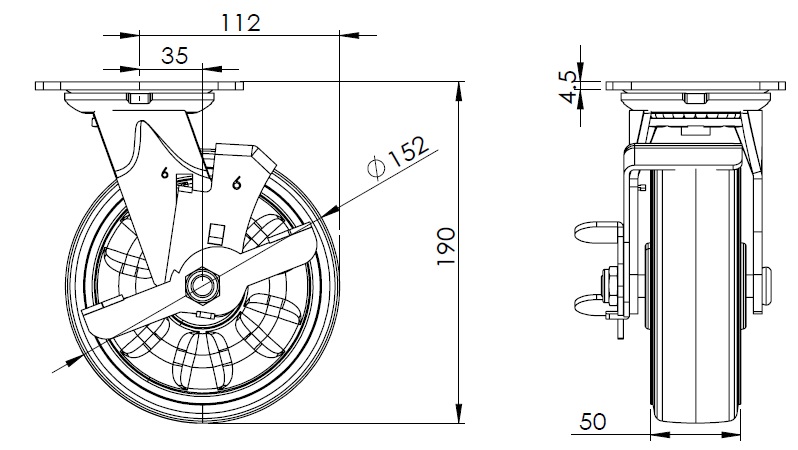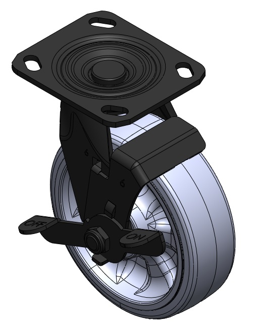 Casters with Side Brakes and With locking system. Welded Caster Fork. Electroplated surface. Mounting Type - Top Plate. Reinforced, impact-resistant polypropylene Wheel Center with High-Quality Reinforced Polypropylene Rubber (TPR) Wheel Tread. Dark gray. Bearings—Annual Ball Bearing. |