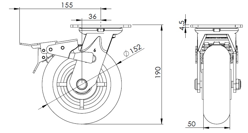 PPR (grey) Wheel Diameter × Wheel Width 152 x 50mm |
